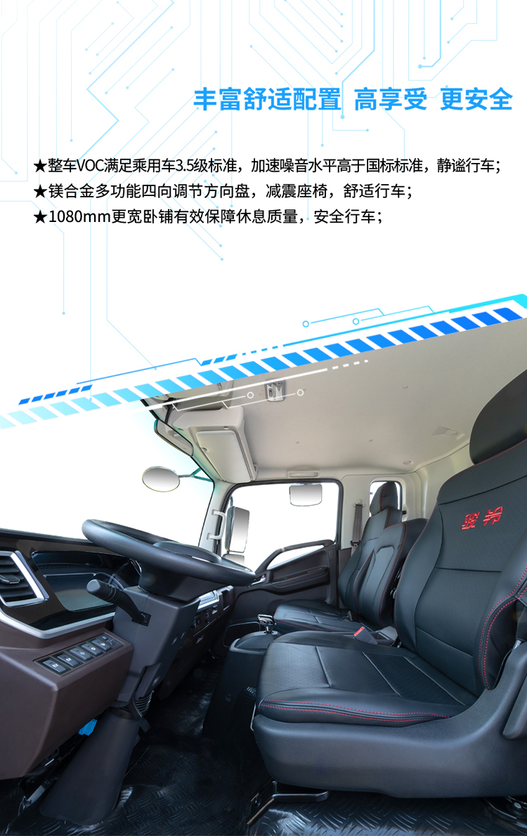 | 基本配置 | DH45、15.55kwh磷酸铁锂电池、驻车空调,电子转向,可翻,气压鼓式,电子驻车,金属漆,电动门窗,中控锁,日间行车灯,电加热后视镜,方向盘(娱乐及巡航按键模块),网联版MP5+倒车影像,LED大灯,自动雨刮,自动大灯,胎压监测,气囊座椅,120L铝合金油箱,铝合金储气筒,铁防护,双电池,备胎,车联网,顶杂物盒,卧铺储物盒(排半标配) | DH45、15.55kwh磷酸铁锂电池、松芝SE410冷机组、驻车空调、电子转向、可翻、气压鼓式、金属漆、电动门窗(一键升降)、中控锁、方向盘(娱乐及巡航按键模块)、日间行车灯、电加热后视镜、网联版MP5+倒车影像、EPB、电子转向、LED大灯、自动大灯、自动雨刮、液晶仪表、胎压监测、气囊座椅、120L铝合金油箱、铝合金储气筒、铁防护、双电池、稳定杆、顶杂物盒、卧铺储物盒(排半标配)、5T/1620后桥、备胎、车联网、钢制副车架 | |
