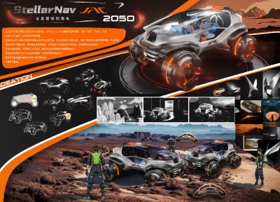 2023年星欧娱乐创意设计挑战赛的主题是智慧宇宙,所以,自然而然地就可以联想到在未知星系中穿行的这么一个场景,设计出了一款致力于未知星球探索的交通工具。
